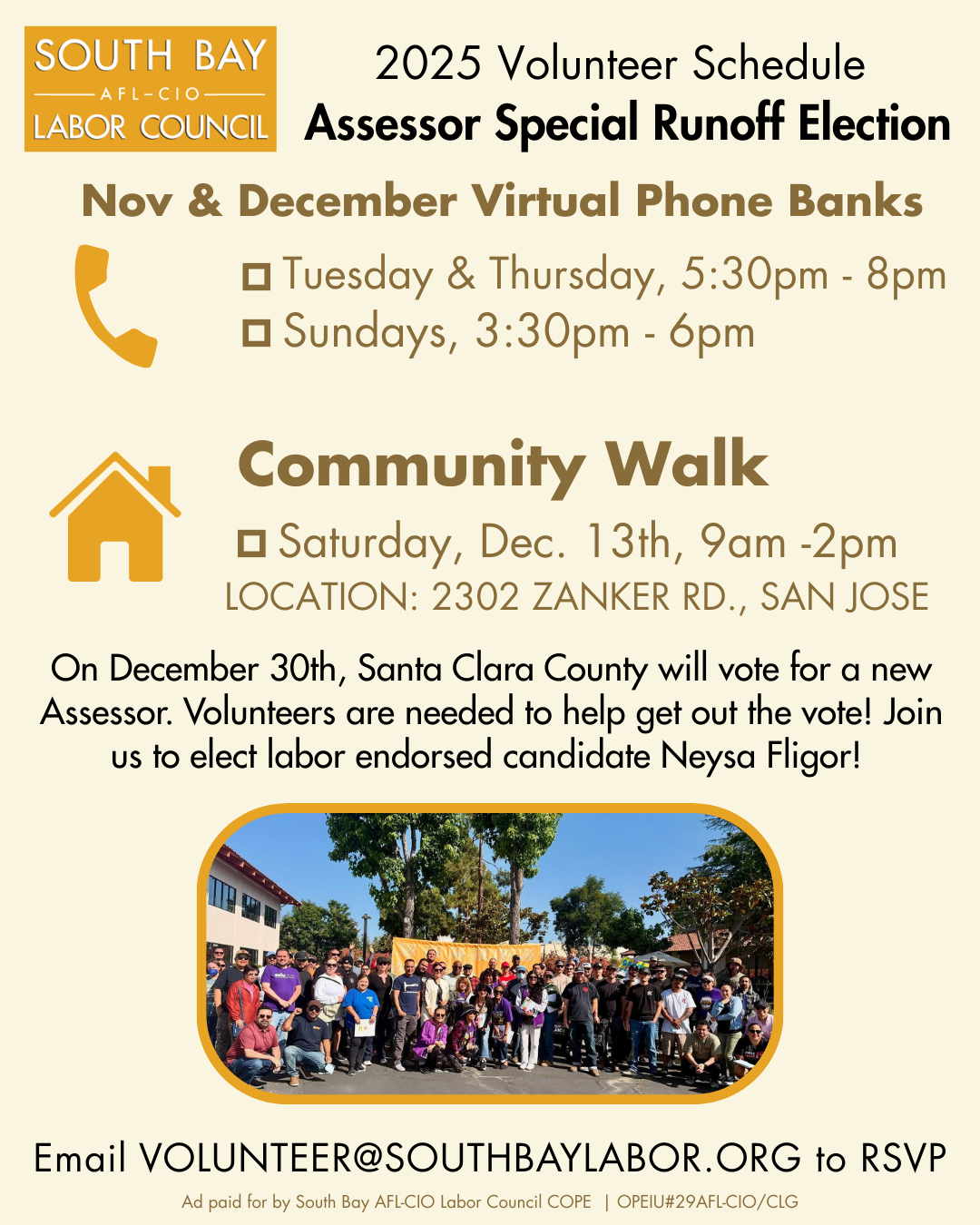 San Jose Special Election Campaign Volunteer Schedule