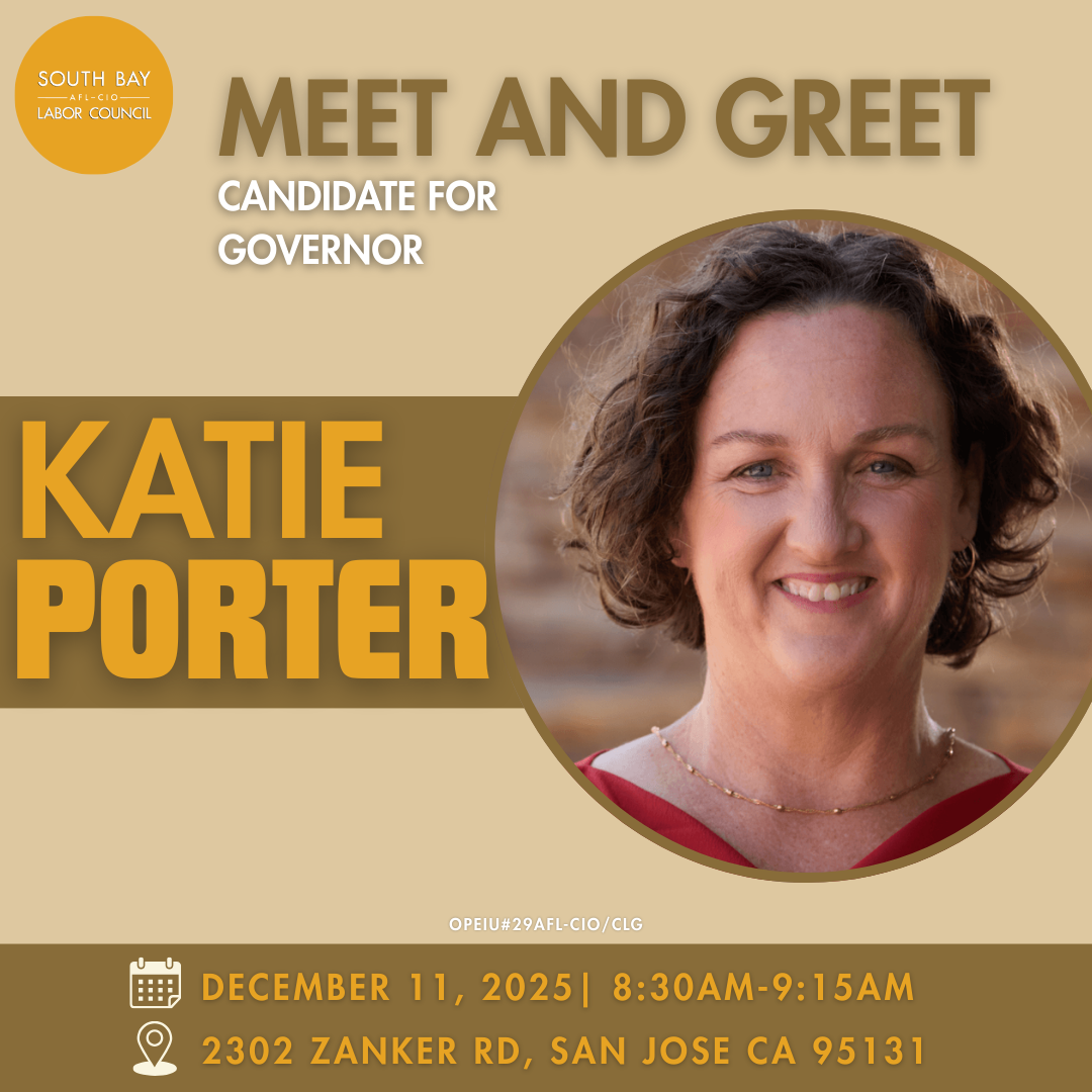 Join the South Bay Labor Council for a Meet & Greet with Katie Porter as she launches her run for Governor. This is a great opportunity to hear her vision for California and engage in conversation.