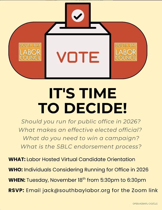 If you are a candidate interested in seeking the endorsement of the labor council, contact SBLC Political Director Jack McGovern at